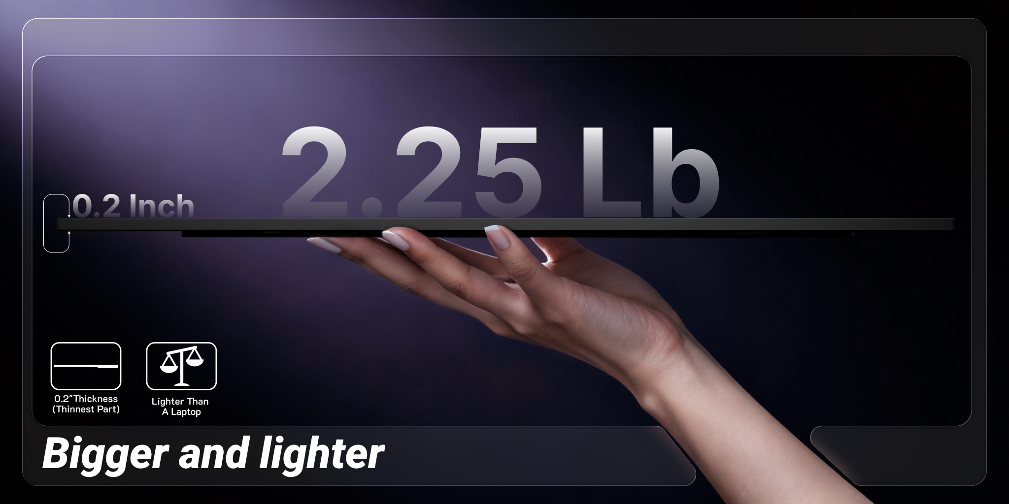 This monitor is designed for life on the go. Its slim, lightweight build makes it incredibly easy to carry and pack, offering durable, hassle-free travel. It seamlessly integrates into your routine, empowering you to work and create with limitless productivity and inspiration, wherever you are.