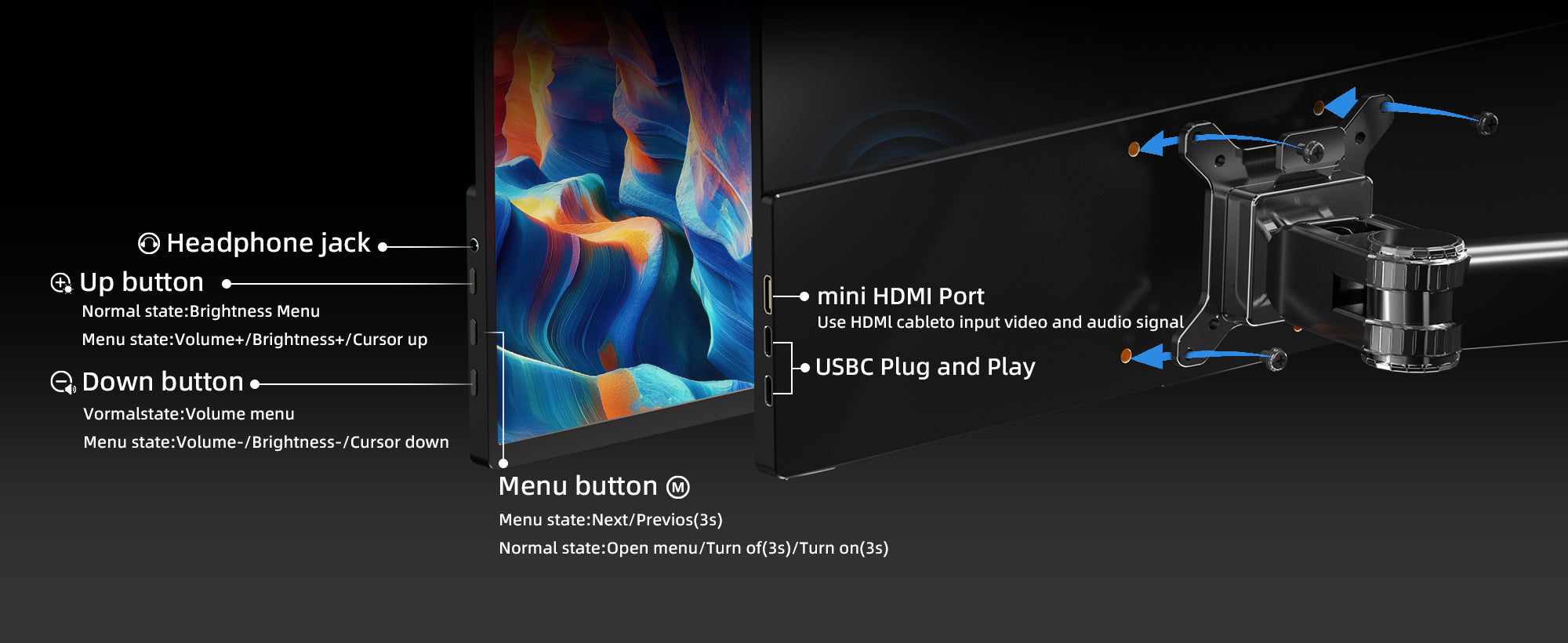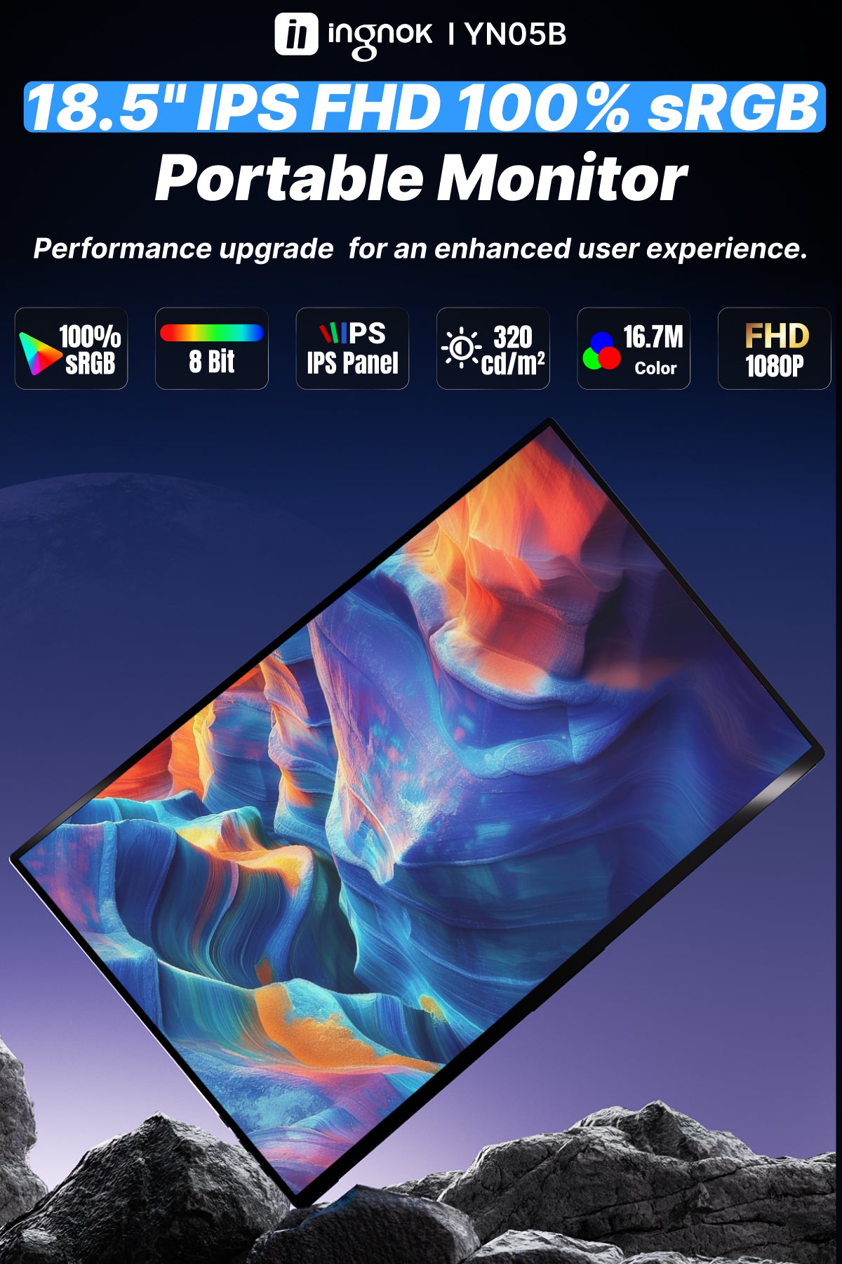 18.5-inch portable monitor brings powerful, immersive 3D stereo sound built right in. Enjoy rich, dynamic audio for movies, games, and music—no external speakers ever needed.