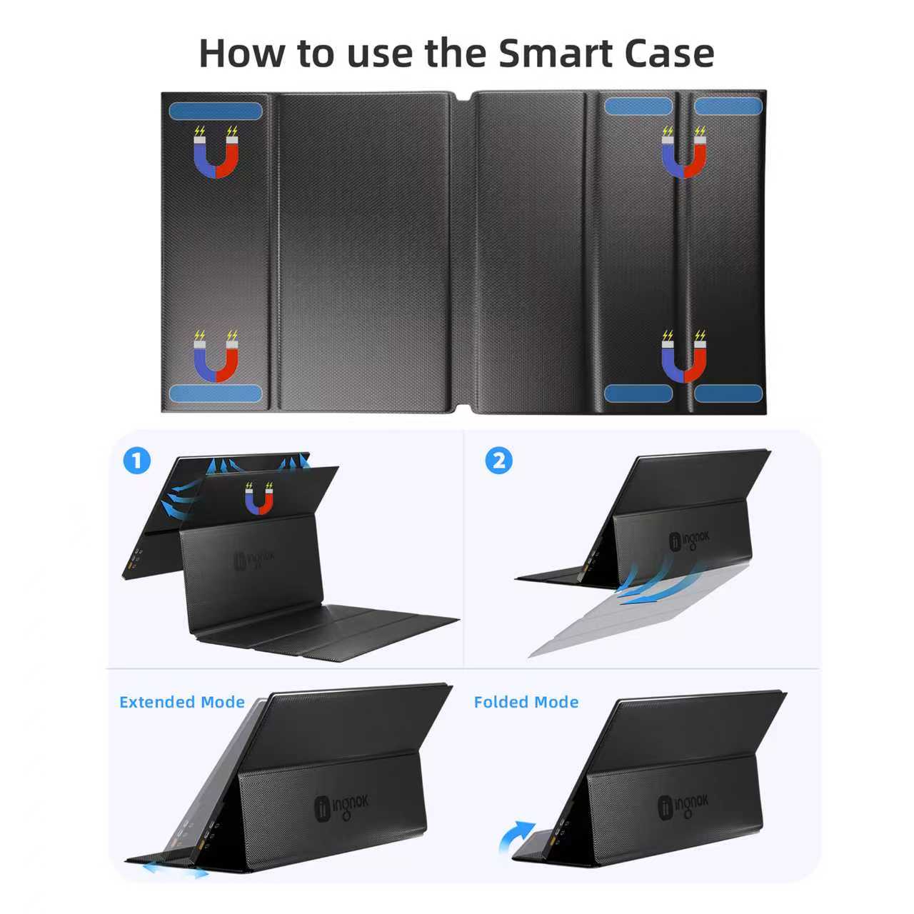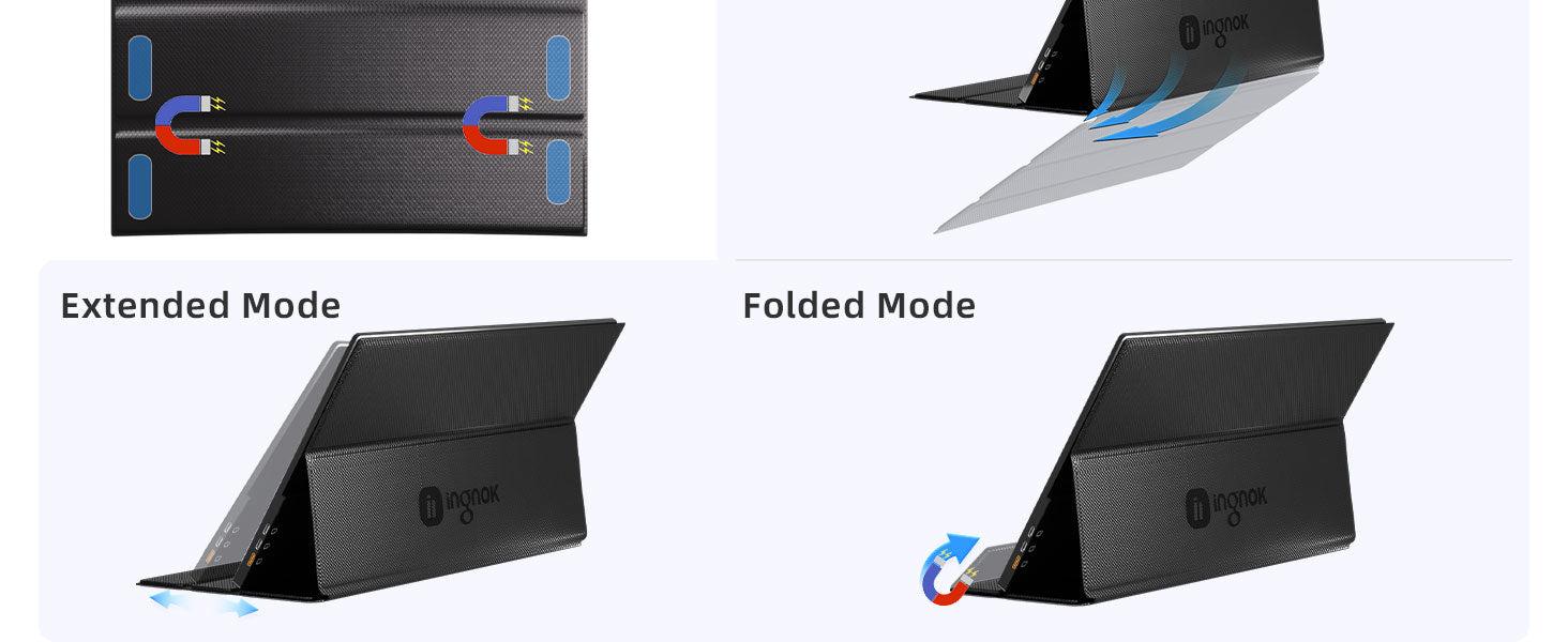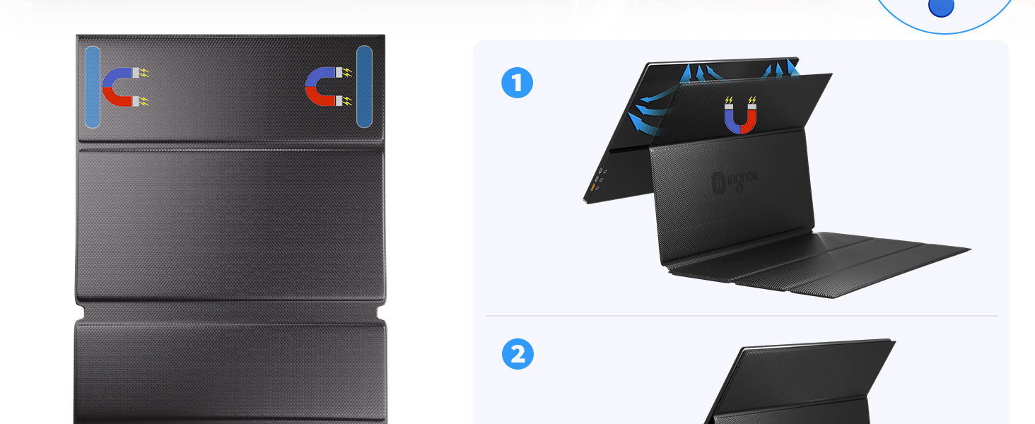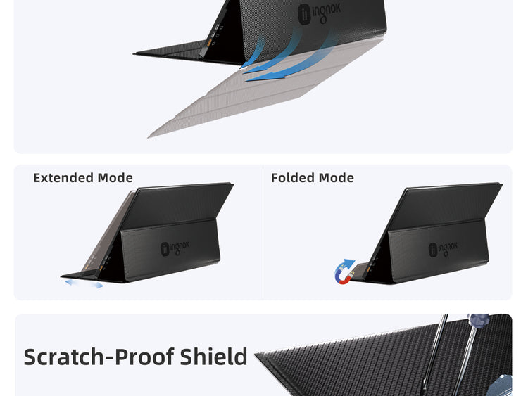 - Effortlessly attach the cover to your Ingnok YN02D/YN02B monitor with a secure magnetic clasp. It seamlessly transitions from a durable protective case to a ready-to-use stand, offering the ultimate convenience in one sleek package.